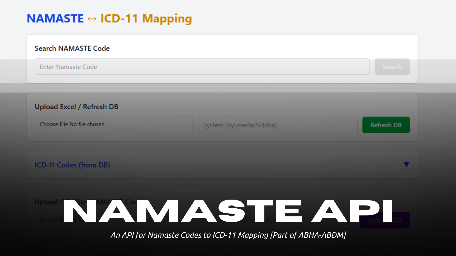 v1.0.1An API to allow for CSV ingestion and mapping the ICD-11 codes to Namaste Codes, and vice versa